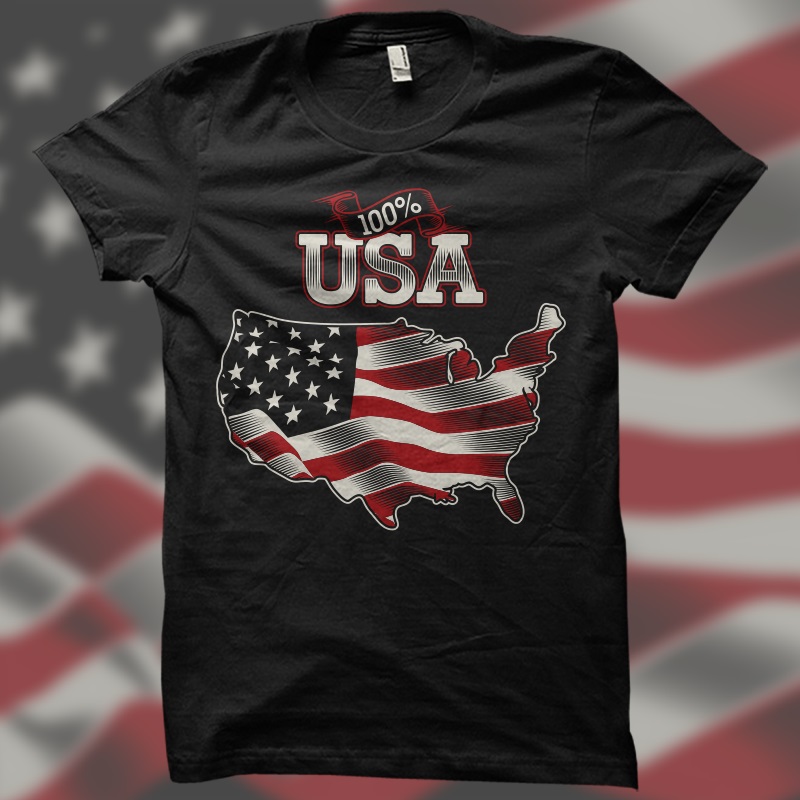 100% USA Tshirt Design Template based on vector files