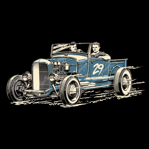 Speeding 1929 Model A roadster pickup (RPU) hot rod with flathead V8 engine - vector illustration