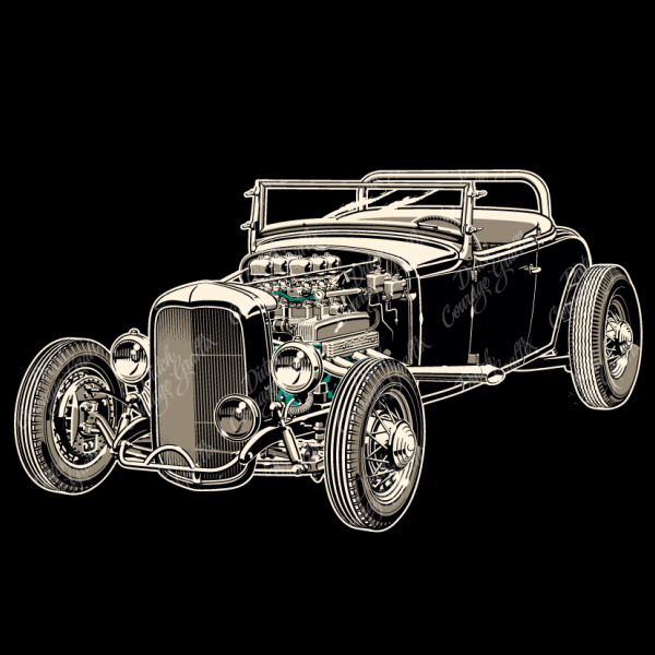 Traditional 1930 late-fifties style model A hot rod roadster with Nailhead V8 engine - vector illustration