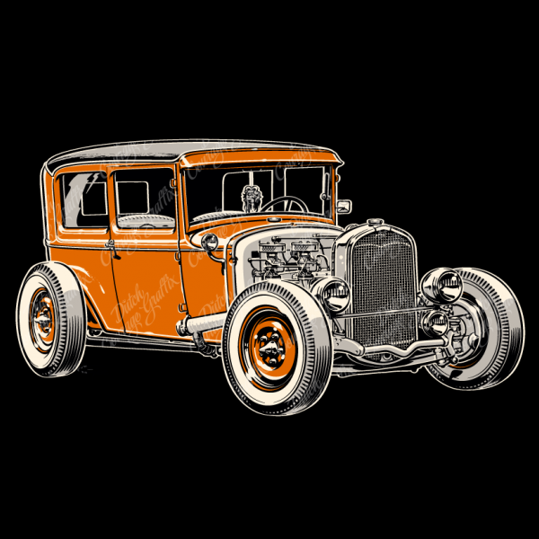 1931 Model A tudor sedan hot rod with 4-banger engine - vector illustration