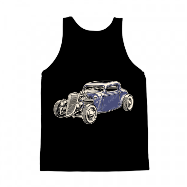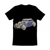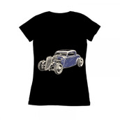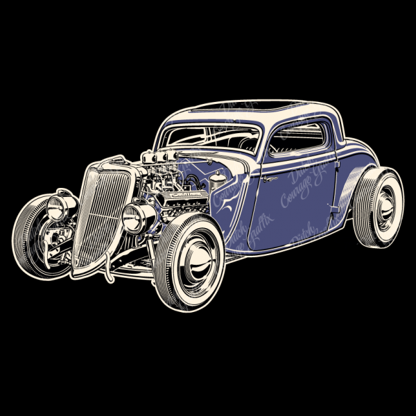 Fenderless 1934 chopped hot rod coupe with Caddy engine - vector illustration