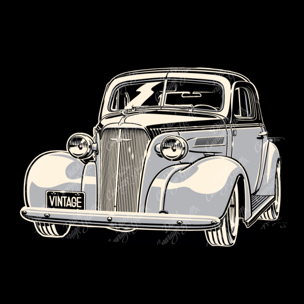 Artwork style: retro, vintage, old school, kustom kulture