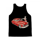 1950 Merc custom car with “talented” pinup girl - vector illustration