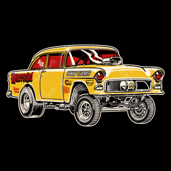 1955 Bowtie altered wheelbase drag racing coupe - vector illustration