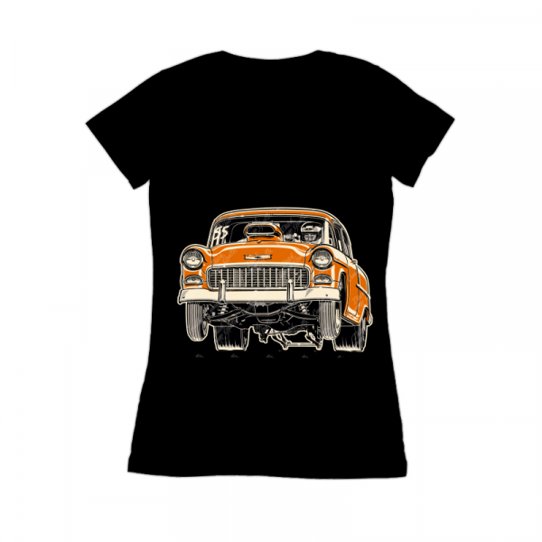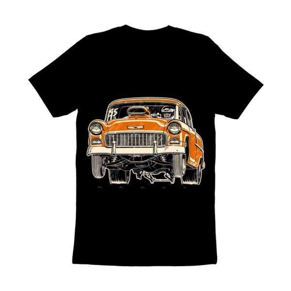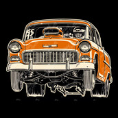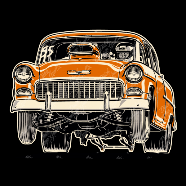 1955 Bowtie gasser drag racing coupe popping a wheelie - vector illustration