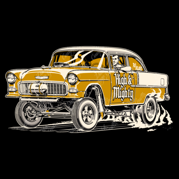 1955 Bowtie straight axle gasser drag racing sedan - vector illustration