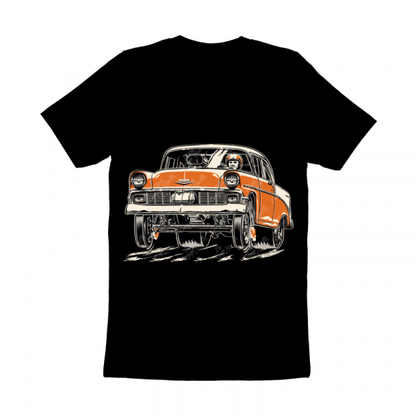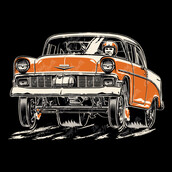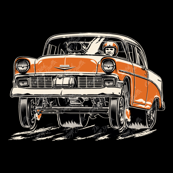 1956 Bowtie BelAir straight axle gasser popping a wheelie - vector illustration