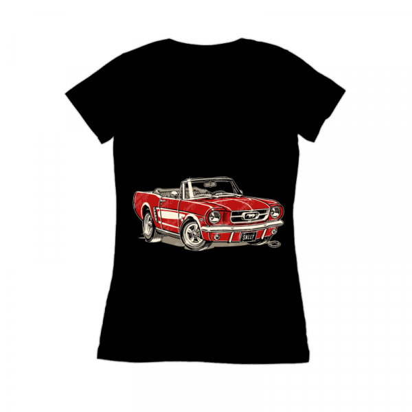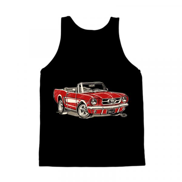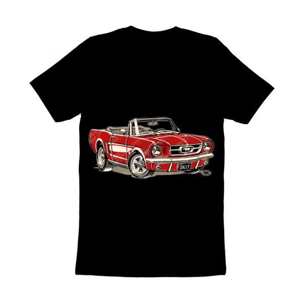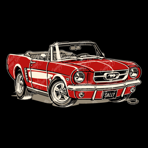 1965 Blue Oval “Mustang Sally” convertible - cartoon - vector illustration