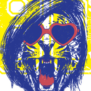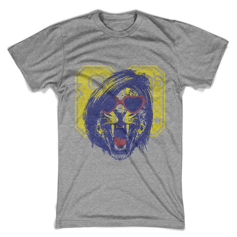 80's Pop graphic design template in vector format, featuring detailed punk lion now available for Adobe Illustrator, Adobe Photoshop and Corel Draw and can be used for digital printing and screenprinting .