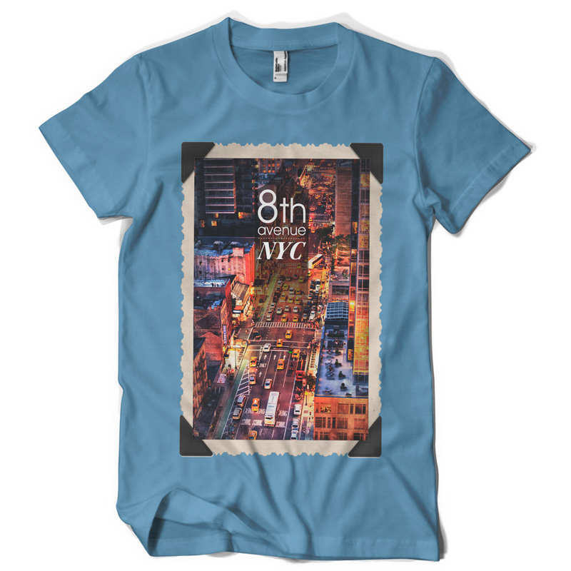 "8th avenue" Artwork created in Adobe Photoshop. The file available for the client upon purchase and download are 1 layered file in TIFF (with transparency) format designed for DIRECT TO GARMENT printing. Also available upon request is 1 file in PDF format, layered, designed for the SCREEN PRINTING.