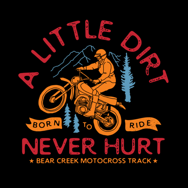 This design “a little dirt never hurt” is made in Adobe Ilustrator is ready for print.