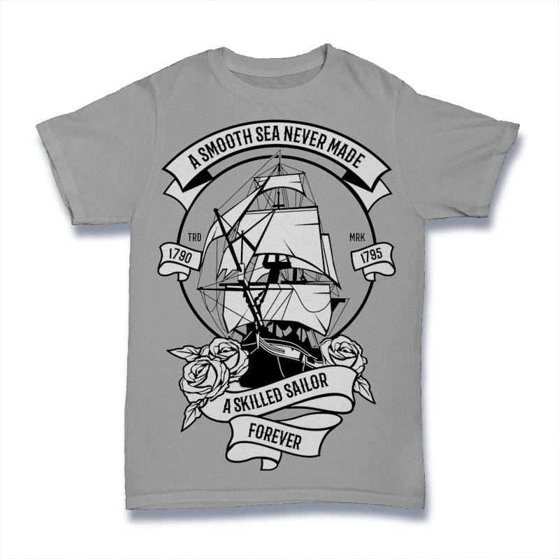 A Skilled Sailor Concept Template style T-shirt design template , The files are AI, CDR, SVG, EPS, PNG and PSD separated Layers. Can be used for digital printing and screen printing.