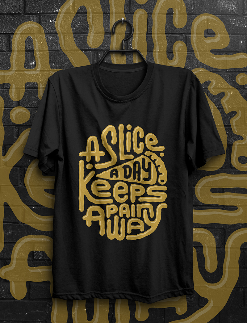 A slice a day keeps pain away is a vector design. The files including Ai, EPS and PNG with transparent background. Perfect for both digital print and screen printing.