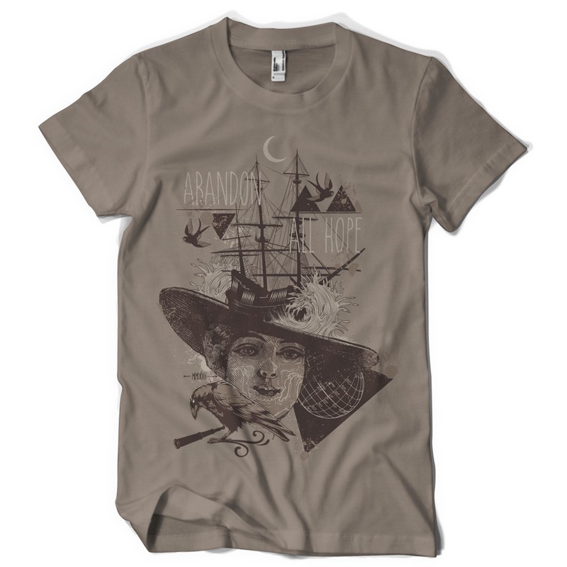 Abandon all hope printed t-shirt features a detailed screen print of retro woman now available for Adobe Illustrator, Adobe Photoshop and Corel Draw and can be used for digital printing and screenprinting .
