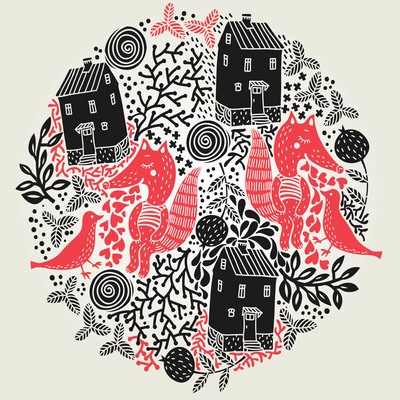 Vector illustration of an abstract planet with animals, houses and plants. This image is a vector illustration and can be scaled to any size without loss of resolution. This image will download as a .eps file.