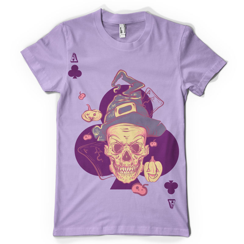 "Ace of clubs" featuring a skull wizard . Design available in vector format and can be used for digital printing and screenprinting. The file will be available for Adobe Illustrator, format EPS.