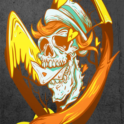 "Ace of hearts" featuring a skull faced angel. Design available in vector format and can be used for digital printing and screenprinting. The file will be available for Adobe Illustrator, format EPS.