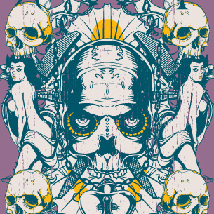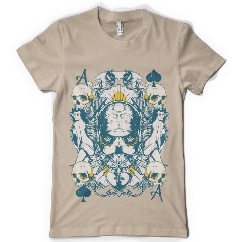 Aces graphic design template in vector format, featuring detailed mysterious skull now available for Adobe Illustrator, Adobe Photoshop and Corel Draw and can be used for digital printing and screenprinting .
