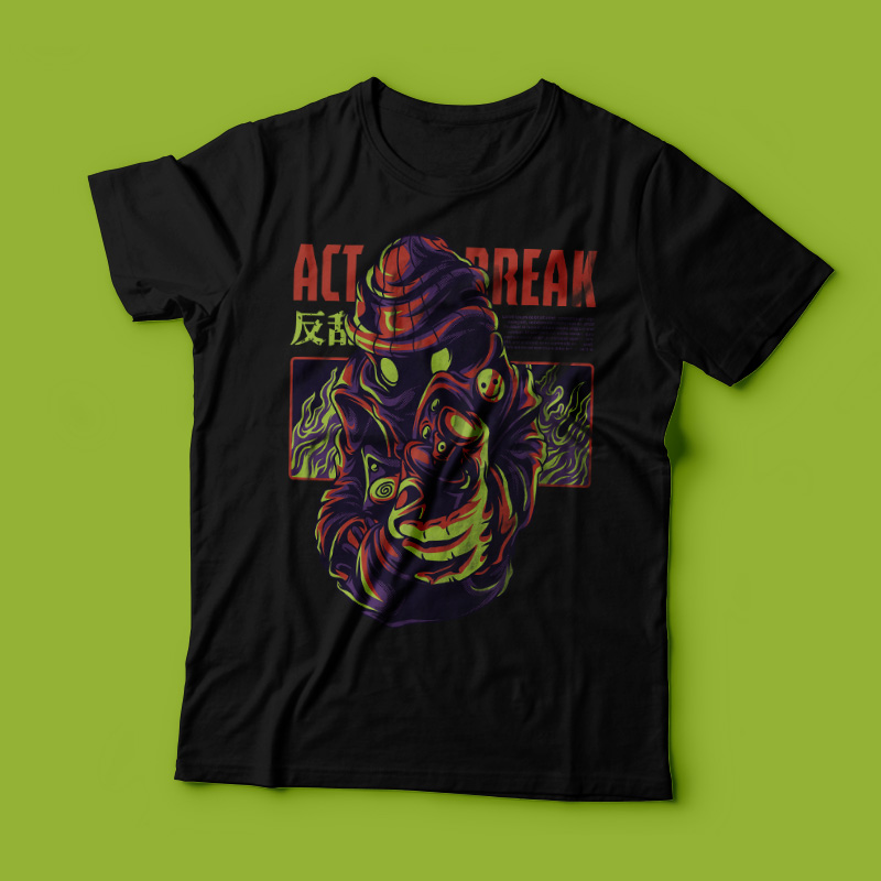 Act Break T-Shirt Design it's a character design that was made in Adobe Illustrator. Based on vector file, easy to resize and edit. File features AI, EPS, and PNG all in zip, CMYK color mode and 4 color. Can be used for digital printing and screen printing.