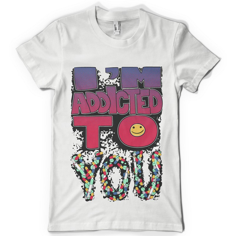 Addicted to you graphic design template in vector format, featuring detailed happy message now available for Adobe Illustrator, Adobe Photoshop and Corel Draw and can be used for digital printing and screenprinting .