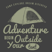 Adventure Begin Outside Your Tent is typography based graphic with adventure mountain outdoor holiday theme and vintage style illustration. The text is EDITABLE so you can change with your own words.