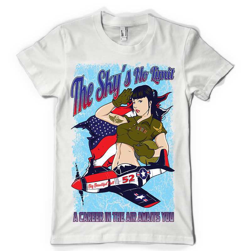 Air Force t-shirt design features a detailed screen print of sexy pilot girl from the army now available for Adobe Illustrator, Adobe Photoshop and Corel Draw and can be used for digital printing and screenprinting .