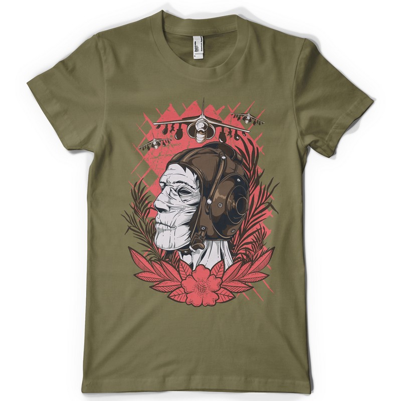 Air raid printed t-shirt features a detailed screen print of pilot skull now available in EPS format file and can be used for digital printing and screenprinting . Ready to print or use in anything you want.