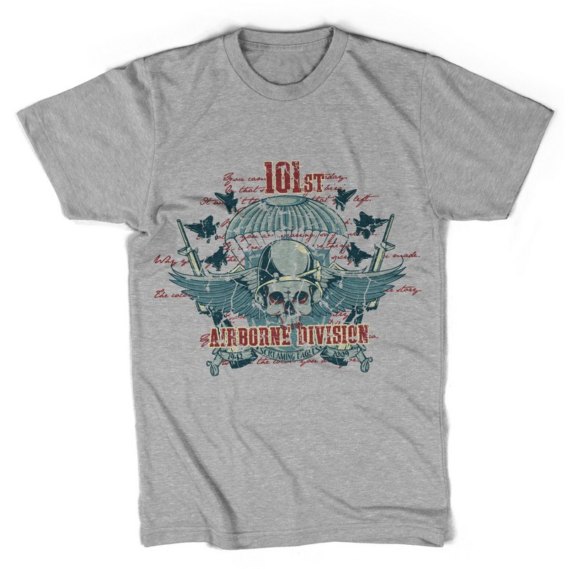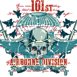 Airbone division graphic design template in vector format, featuring detailed skull pilot parachuting now available for Adobe Illustrator, Adobe Photoshop and Corel Draw and can be used for digital printing and screenprinting .