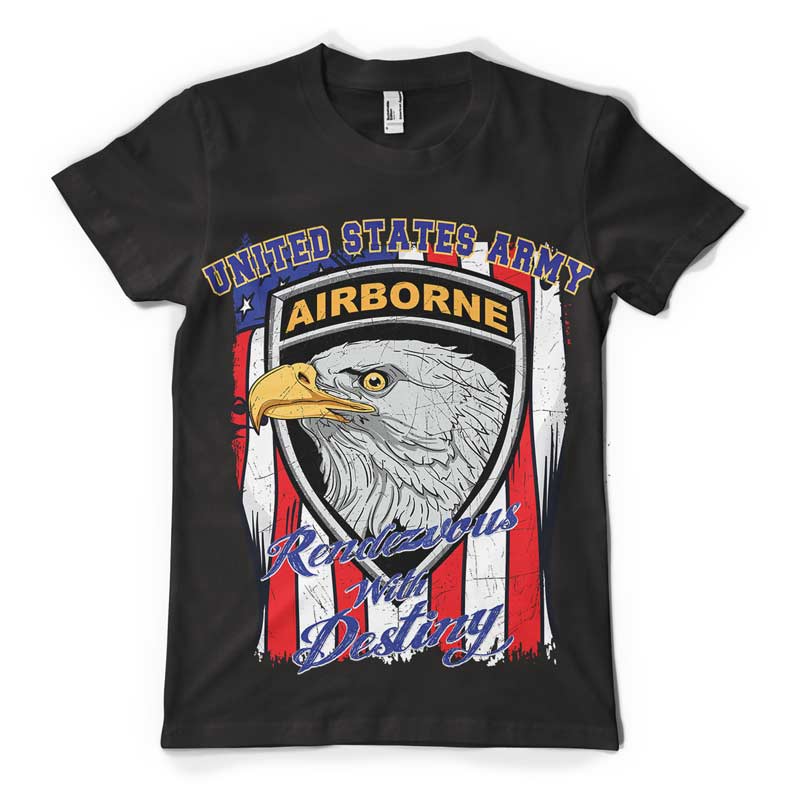 Airborne t-shirt design features a detailed screen print of symbol of liberty now available for Adobe Illustrator, Adobe Photoshop and Corel Draw and can be used for digital printing and screenprinting .