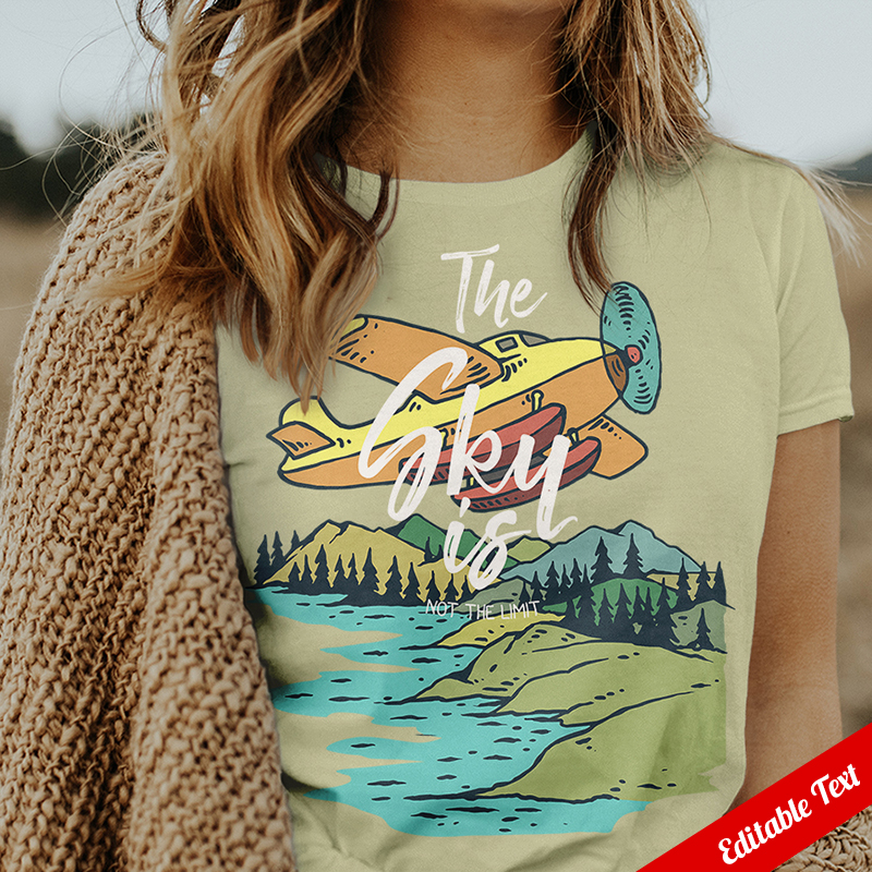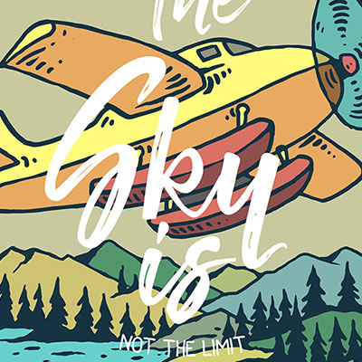 Vector illustration of plane flying on alaska mountain. Ready to print on t-shirt.