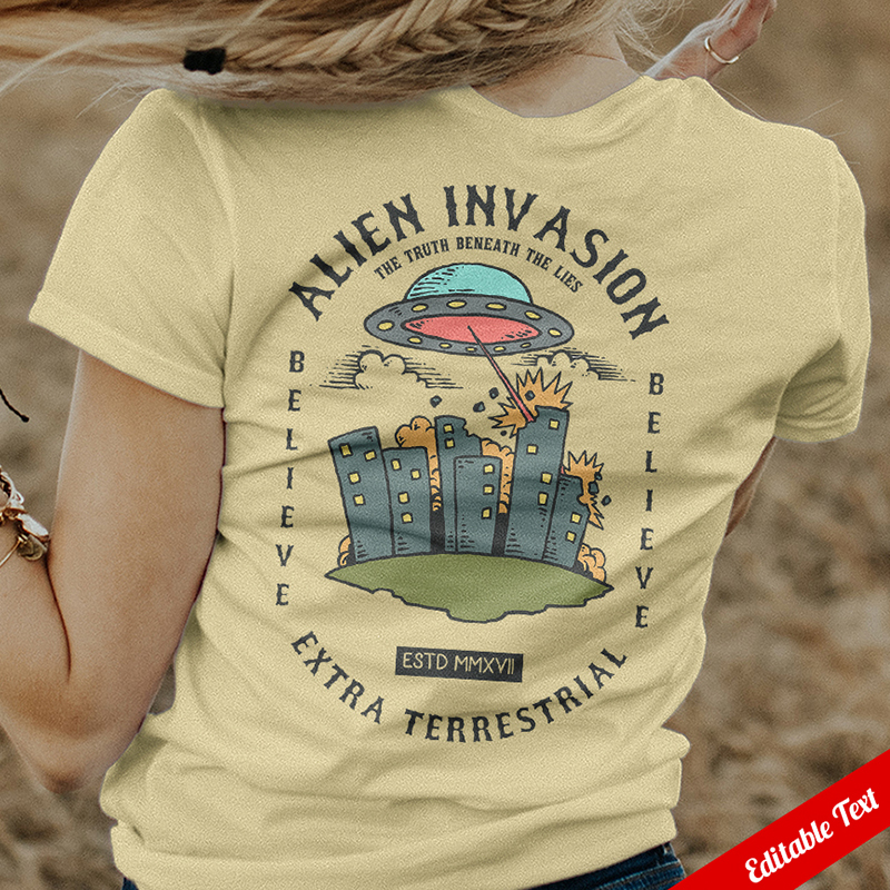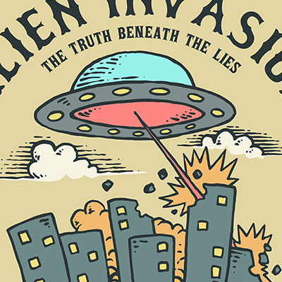 Vector illustration of alien ufo attack on city. Ready to print on t-shirt.