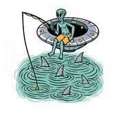 Aliens fishing in the sea