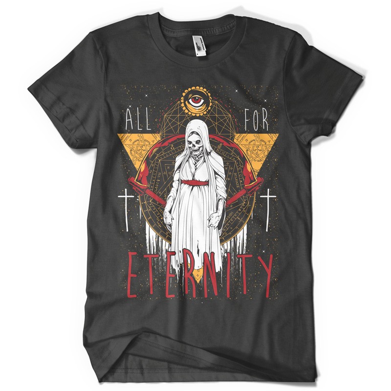 Digital design featuring detailed saint skull . All for eternity template is available in vector format and can be used for digital printing and screenprinting. The file will be available for Adobe Illustrator, Adobe Photoshop and Corel Draw