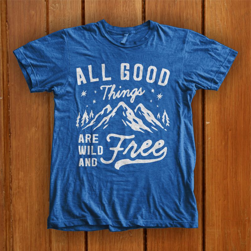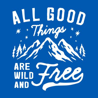 "All Good Things Are Wild And Free" Hand made, typography, style t-shirt design.