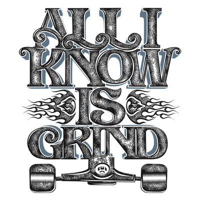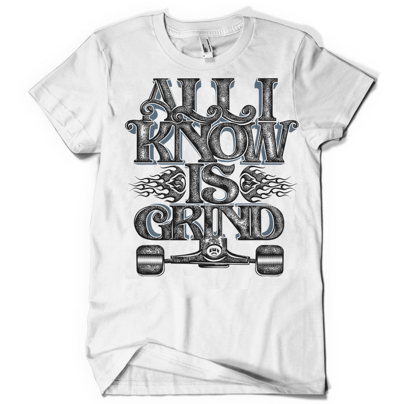 All I Know Is Grind T-shirt design created with Corel Draw and Adobe illustrator. 2 colour print, CDR,AI,EPS,PDF,PSD separated Layers. Can be used for digital printing and screen printing.