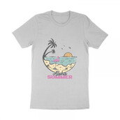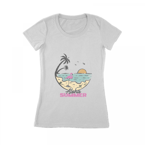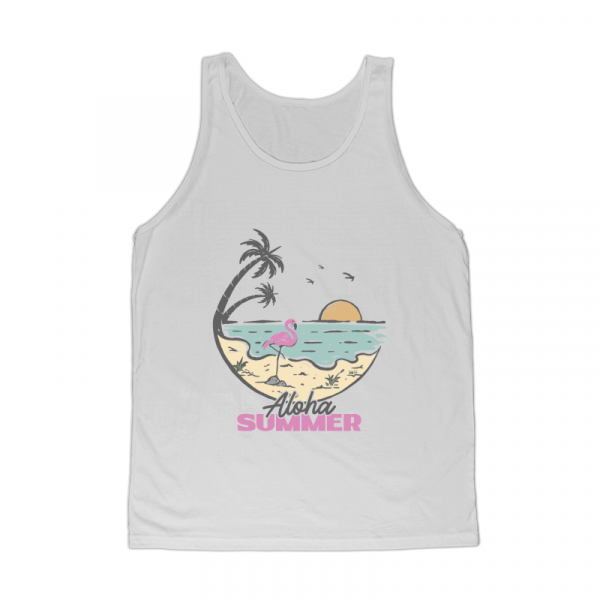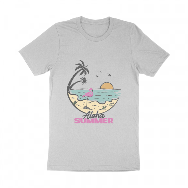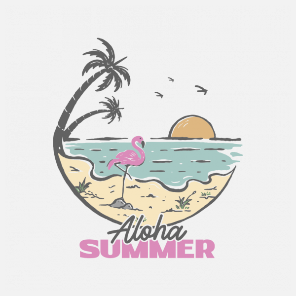 Aloha Summer Flamingo is a vintage illustration that is suitable for apparel or merchandise about nature, outdoors, summer, vacation, holiday, beach, surfing, flamingo, bird, animal, sea, ocean, travel, hawaii, california, camping, tropical.