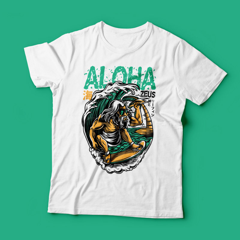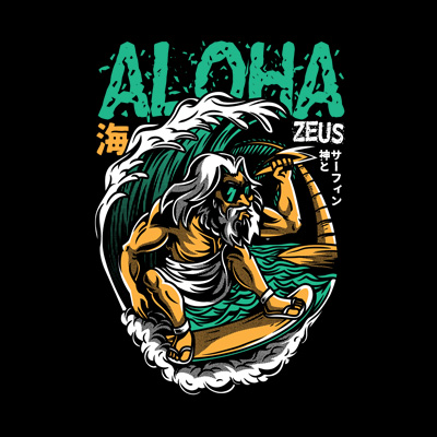 Aloha Zeus its a Character Design that was made in adobe illustrator. Based on vector file , easy to resize and edit. File features AI, EPS, and PNG all in zip, CMYK color mode and 4 color. Can be used for digital printing and screen printing.