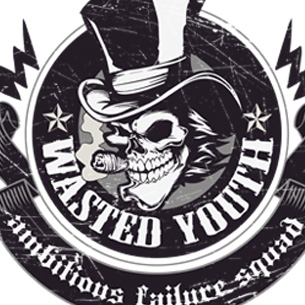 Ambitious failure squad graphic design template in vector format, featuring detailed gentleman skull smoking now available for Adobe Illustrator, Adobe Photoshop and Corel Draw and can be used for digital printing and screenprinting .