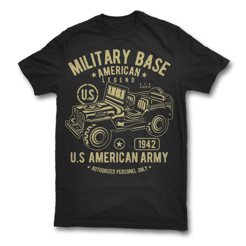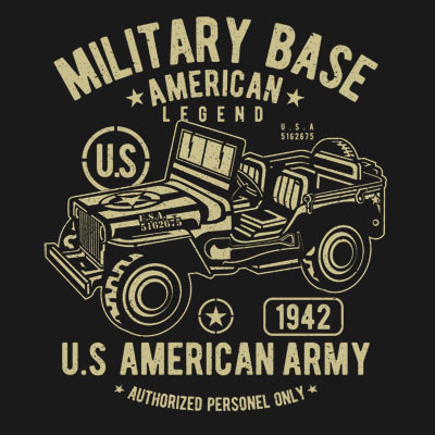 American Army Jeep Design Template based on vector files , such as AI and CDR also with PSD separated Layers file, the design has 1 color print, it can be used for digital printing and screen printing.
