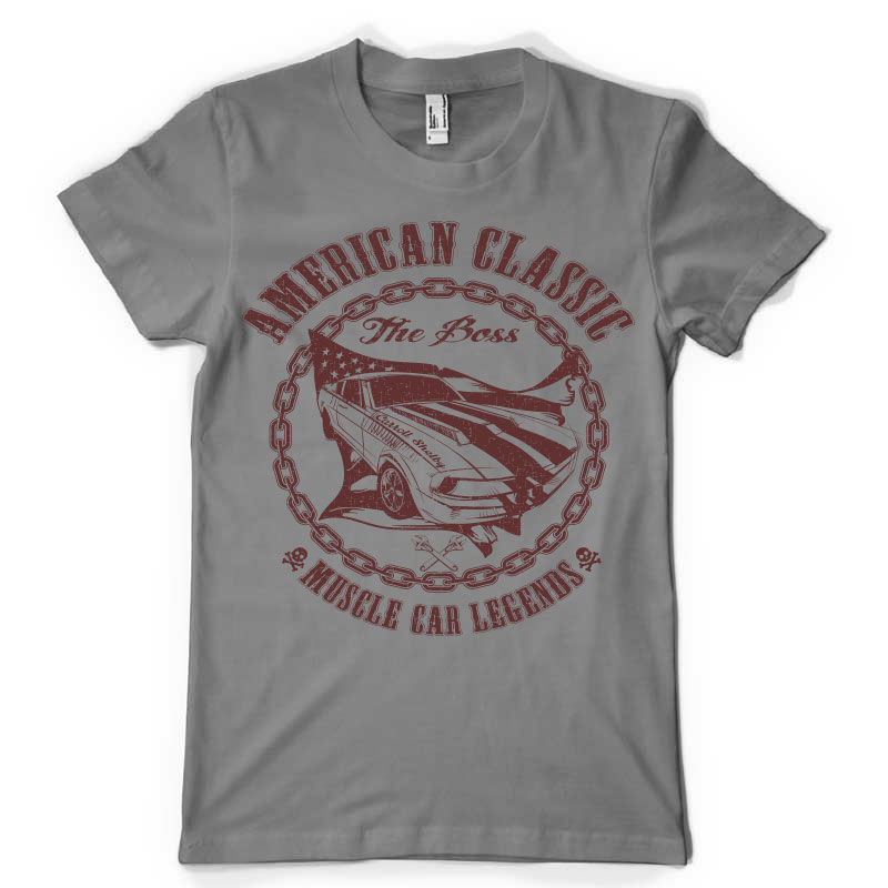 American Classic t-shirt design features a detailed screen print of speed car now available for Adobe Illustrator, Adobe Photoshop and Corel Draw and can be used for digital printing and screenprinting .