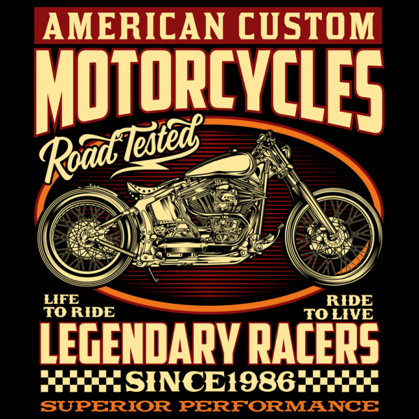 “AMERICAN CUSTOM MOTORCYCLES ” T-Shirt was created with Corel Draw and Adobe illustrator.Three color print, CDR,AI,PNG. Can be used for digital printing and screen printing