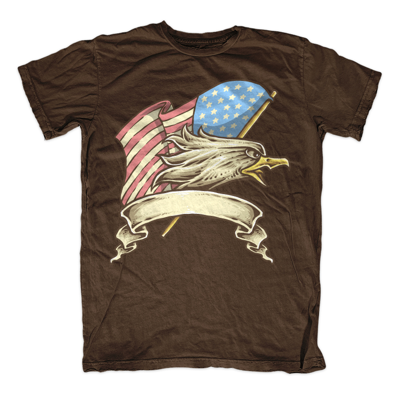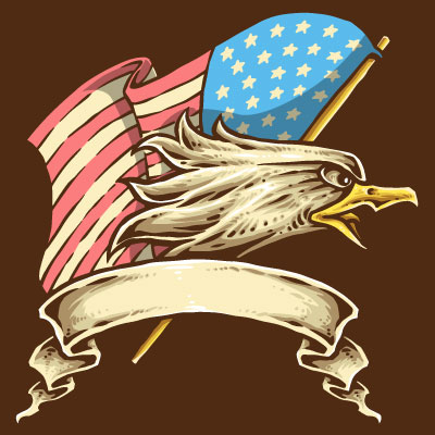 Vector illustration of eagle with banner and american flag. Ready to print on t-shirt.