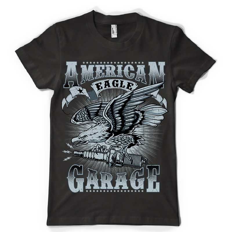 American Eagle design features a garage eagle detailed screen print now available for Adobe Illustrator, and Corel Draw and can be used for digital printing and screenprinting.