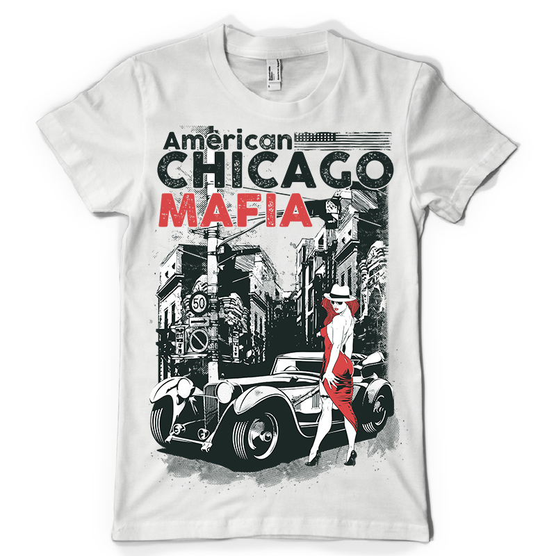 American Mafia design features a pin up gangster detailed screen print now available for Adobe Illustrator, Adobe Photoshop and Corel Draw and can be used for digital printing and screenprinting