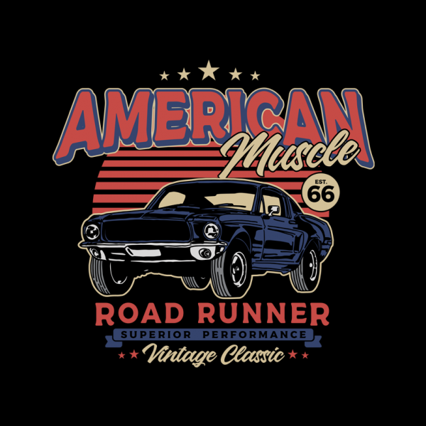 This design “ american muscle ” is made in Adobe Ilustrator is ready for print.