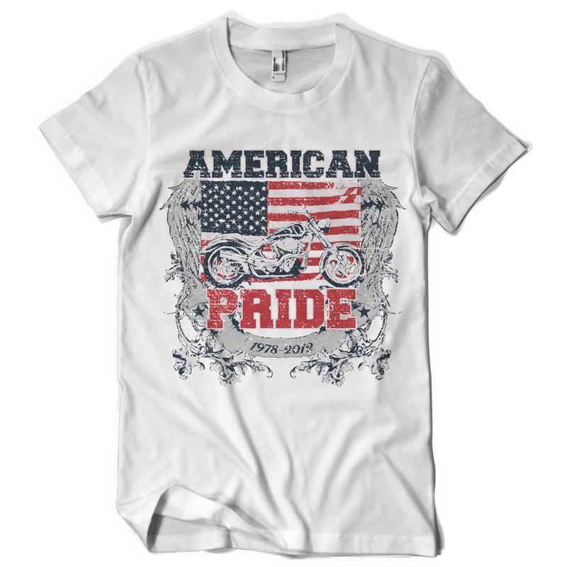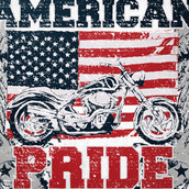 Digital design featuring detailed USA flag and motorcycle. American pride template is available in vector format and can be used for digital printing and screenprinting. The file will be available for Adobe Illustrator, Adobe Photoshop and Corel Draw