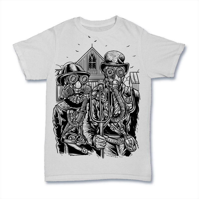 American Steampunk artwork concept for T-shirt design with 1 print colors and the delivered files are CDR, AI, EPS, PSD separated Layers and PNG Image File. This artwork Can be used for digital printing and screen printing. Enjoy