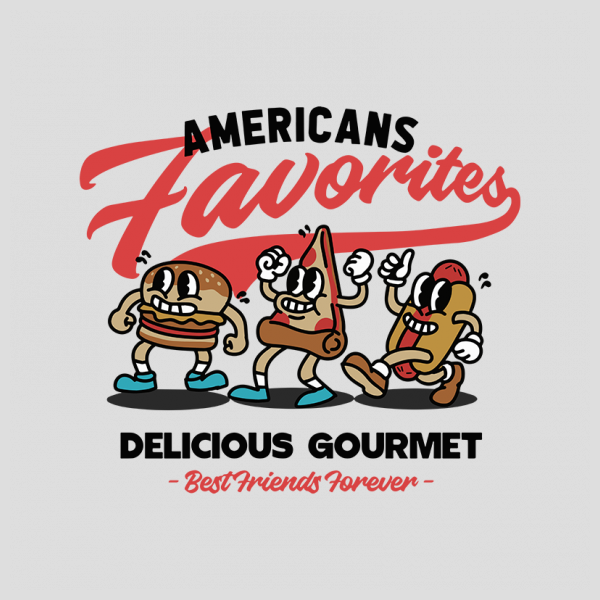 This design “ americans favorites ” is made in Adobe Ilustrator is ready for print.