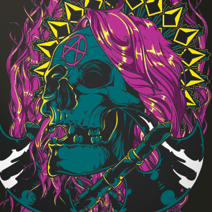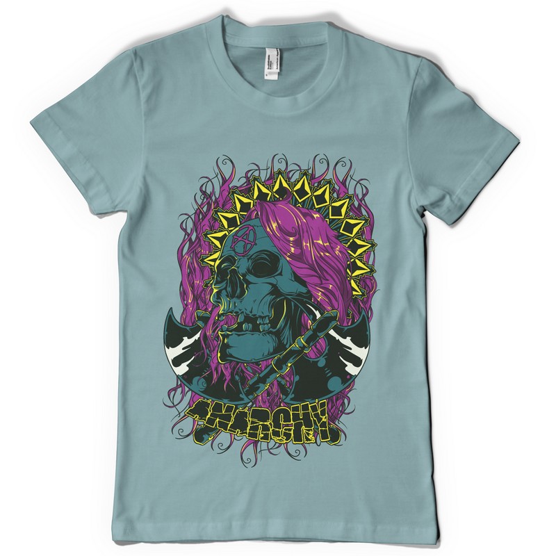 Anarchy digital design template in vector format, featuring detailed punk skull girl now available for Adobe Illustrator, Adobe Photoshop and Corel Draw and can be used for digital printing and screenprinting .