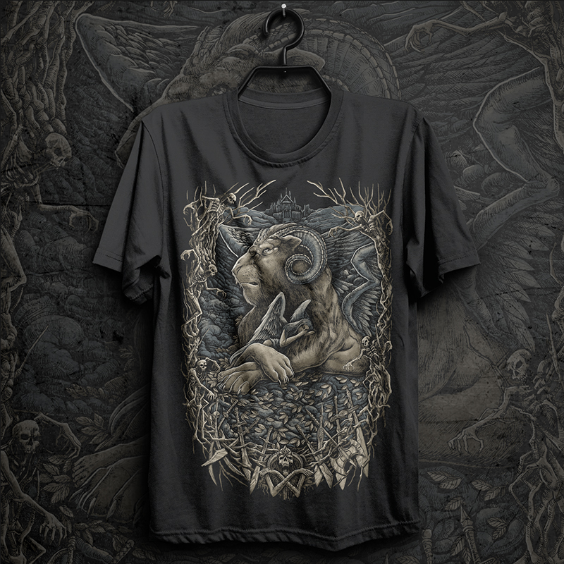 ''angel 3 '' is unique Illustration of some skull with a lion and angel. with the dark scene for background and use pastel colors pallete...Made with hand drawing looking and dark style. Ready to print on t-shirt.